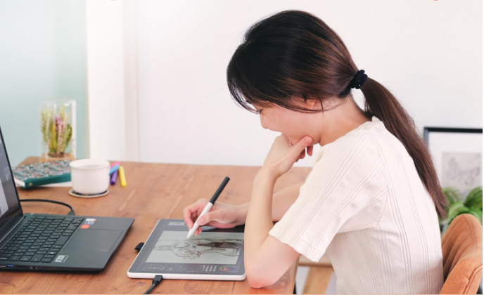 Incluye un bolígrafo sin batería, con 4096 niveles de presión y soporte de inclinación de 60°, lo que permite lograr trazos naturales, sombreados suaves y un control total del flujo creativo. Su superficie antirreflejo reduce distracciones y fatiga visual, manteniéndote en la zona creativa por más tiempo.
