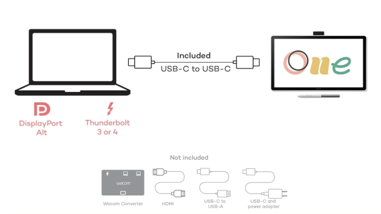 Nota: Dispositivos sin DP Alt necesitan conversor Wacom ACK45219Z (se vende por separado).